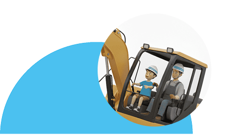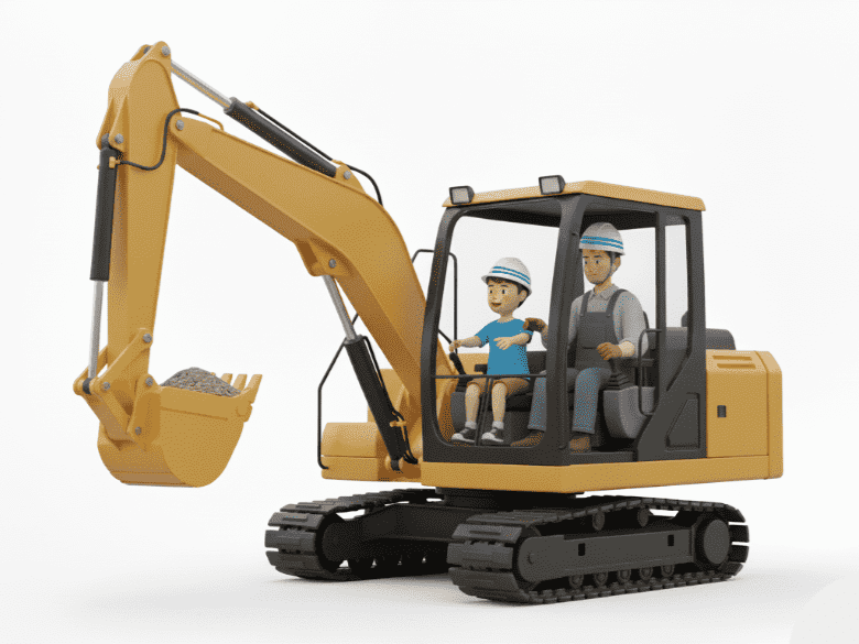 小型のショベルカーに乗って、土を掘ったり、物を持ち上げたり。